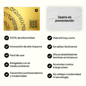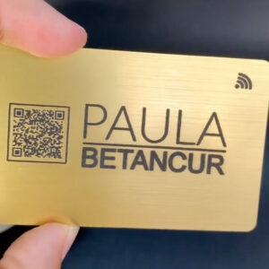 La Tarjeta de presentación digital en metal dorado con corte láser es una herramienta premium para quienes buscan elegancia y funcionalidad. Con tecnología NFC y QR, grabado láser de precisión y personalización total, transformarás la forma en la que compartes tu información.