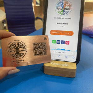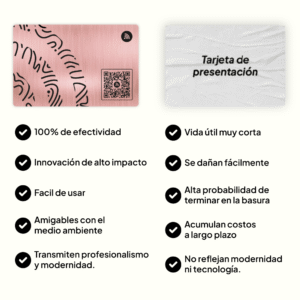 La Tarjeta de presentación digital en metal oro rosa con corte láser es la herramienta premium para destacar en el mundo profesional. Con tecnología NFC y QR, grabado de precisión y personalización total, transforma tu manera de conectar.