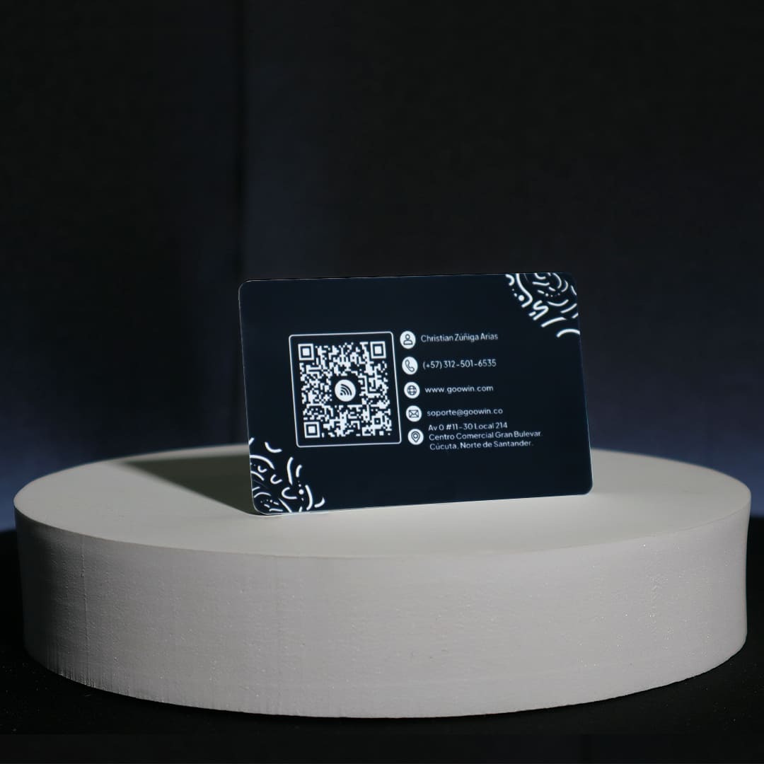La Tarjeta de presentación digital negra es la elección ideal para quienes buscan un estilo elegante y profesional. Con NFC y QR integrados, personalización completa y un acabado premium, transformarás tu manera de conectar en cada encuentro.