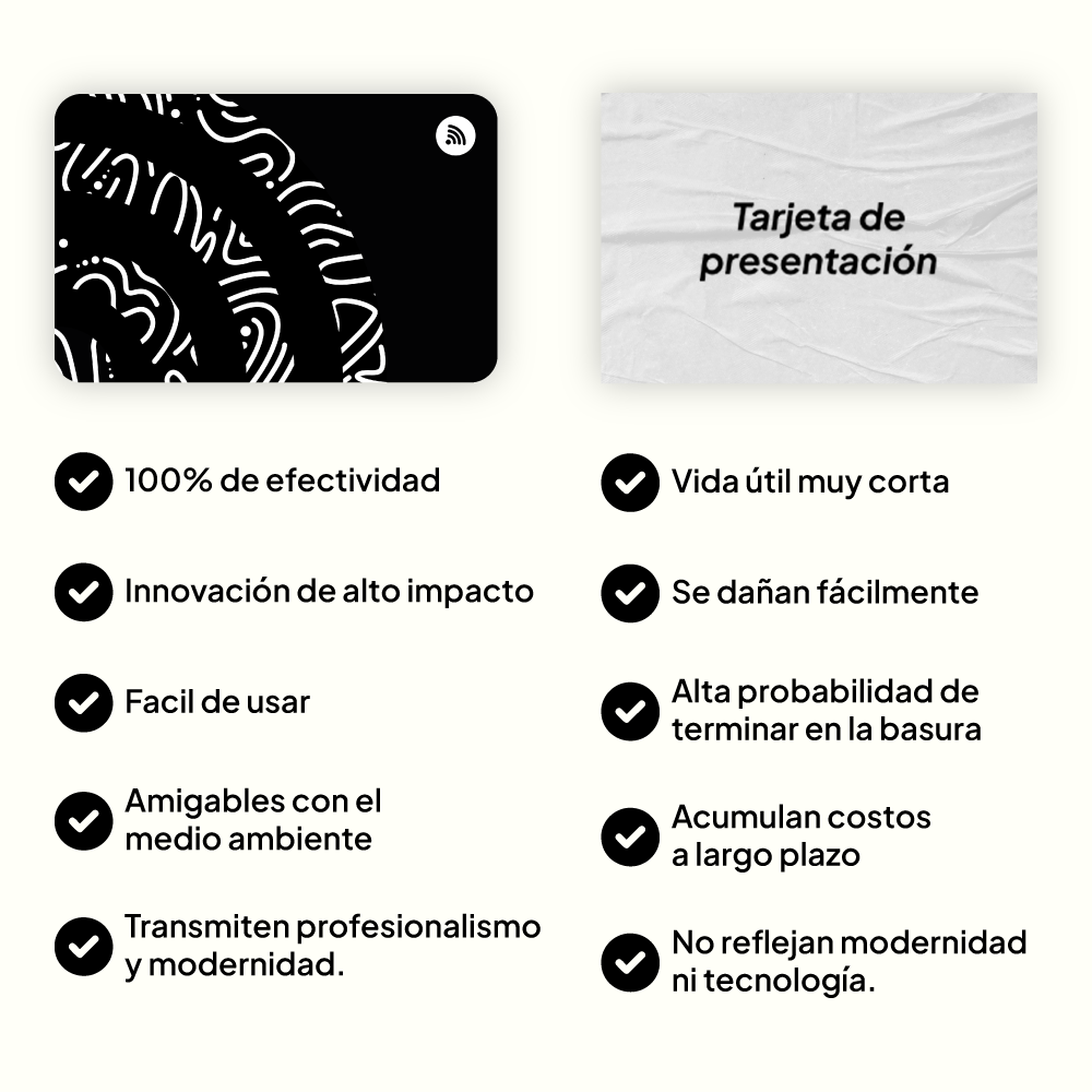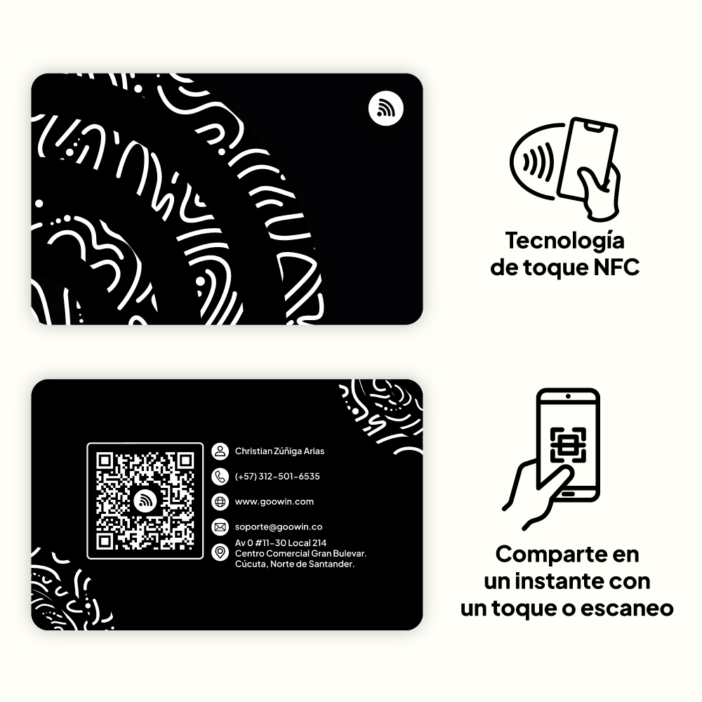 La tecnología NFC permite compartir tu información con solo acercar tu tarjeta al celular de otra persona. 📲 Es rápida, práctica y profesional.