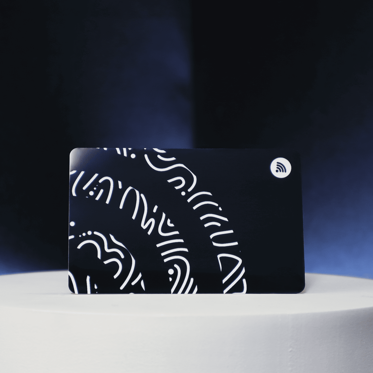 Tarjeta de presentación digital negra con NFC y QR. Personalízala y comparte tu información profesional al instante sin necesidad de apps.