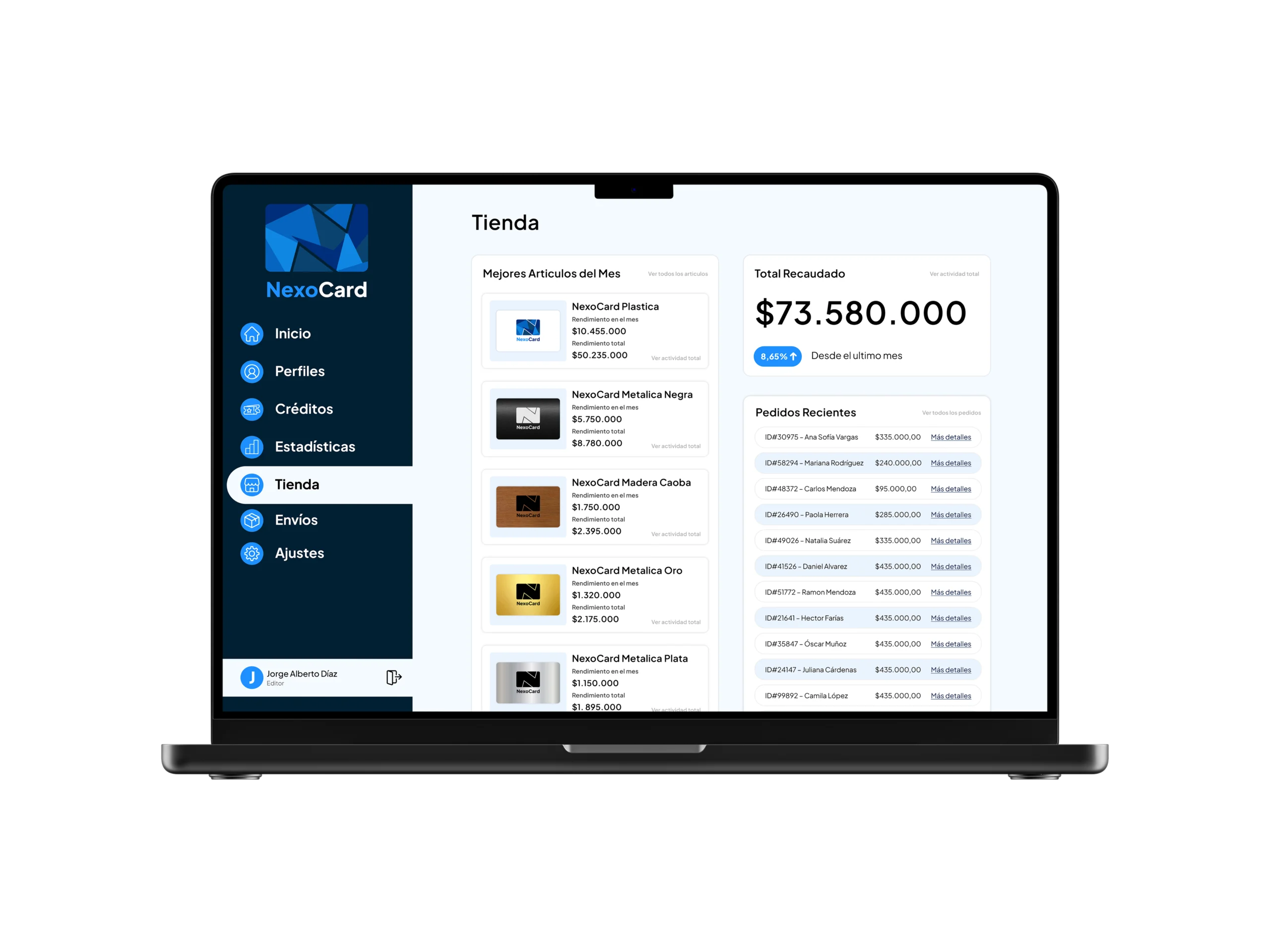- Panel de administración.